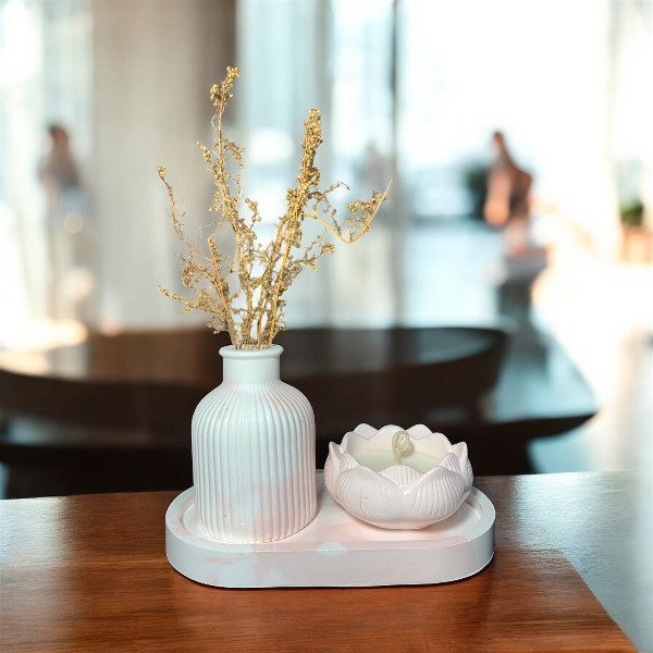 COMBO #6 Bandeja ovalada + Florero + Flor de loto con vela de soja arómatica.